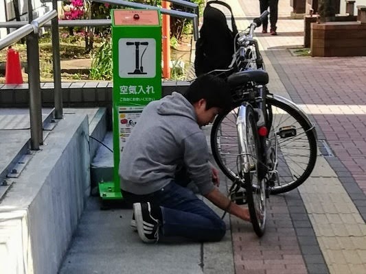 Here's an "air station" for bikes and it's out in front of a bike shop.